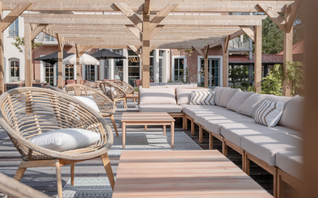 Aux premiers rayons de soleil le bar du Domaine vous accueille sur sa terrasse. C'est le signal que le printemps a vraiment commencé au Domaine. Un cocktail dans la main, les pieds dans l'herbe, le soleil qui descend : il y a des fins d'après-midi qui valent le voyage.